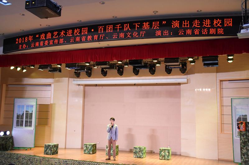 为认真学习并贯彻落实党的十九大精神,坚持以习近平新时代中国特色社会主义思想为指导,全面贯彻党的教育方针,坚持社会主义办学方向,以立德树人为根本,以理想信念教育为核心,以社会主义核心价值观为引领,从2018年4月开始,由云南省委宣传部、云南省教育厅、云南省文化厅、云南省委高校工委等多家上级领导部门联合组织面向全省高??沽恕爸涡率贝芏返那啻鹤蠲览觥蔽魈獾奈囊战咝O盗谢疃;疃问桨ㄖ魈飧枨⒋醋魍乒?、专场文艺演出、优秀国产电影展映、戏曲艺术进校园、美术书法摄影家进校园等。