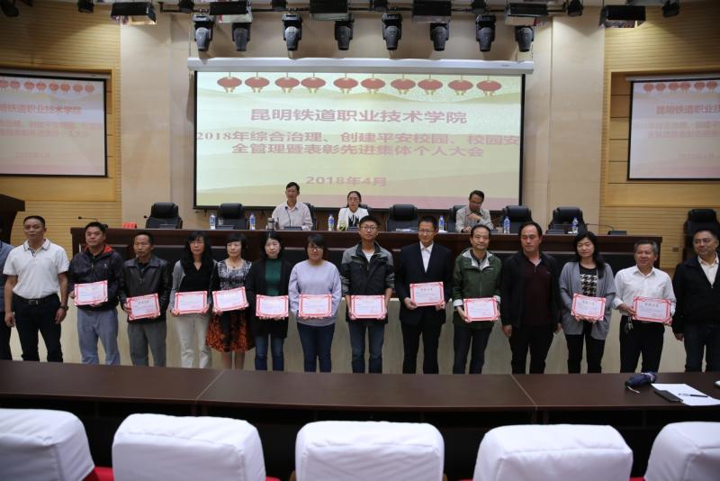 4月27日下午2点,昆明铁道职业技术学院2018年度综合治理、创建平安校园表彰大会,昆明铁道职业技术学院庆祝“五一”国际劳动节暨表彰大会在图书信息中心报告厅举行,尹光副院长主持表彰大会,全院教职工参加。