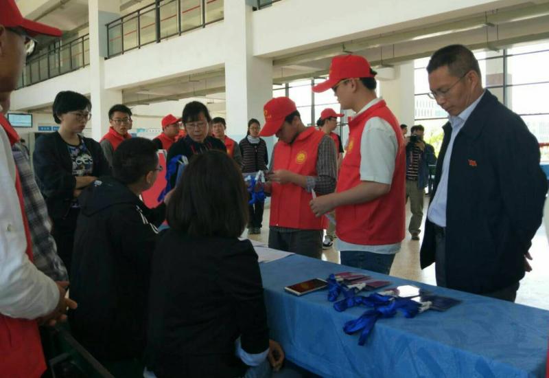 4月9日,志愿者分成四大组,他们扮演着不同的角色,承担着不同的任务。有的志愿者用耐心细致接待着来自各参赛代表队的老师和同学;一部分志愿者在以升楼各个赛点配合老师做好检录、抽签工作;另一些志愿者被分到城市轨道交通实训基地为比赛的同学做引导和提示;其他志愿者在报告厅赛点为比赛的同学做服务工作。