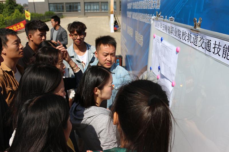 经过了参赛选手们紧张激烈的角逐和裁判们公平公正的裁决,4月12日上午,在昆明铁道职业技术学院以升楼前,我院机车车辆系马力老师受省厅裁判组委托,公布本次“运达科技杯”城轨交通客运服务技能大赛的比赛成绩。铁道运输系领导、老师以及技能大赛指导老师和两支参赛队出席。