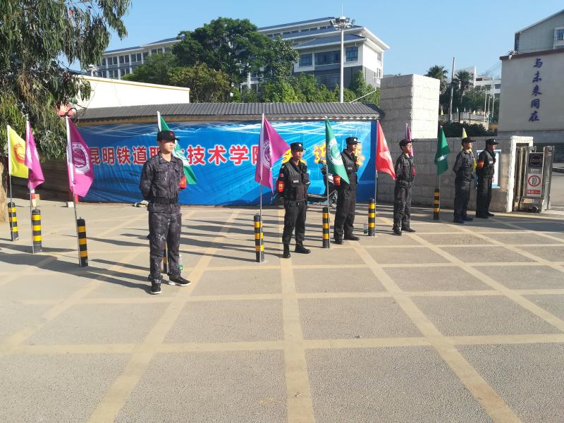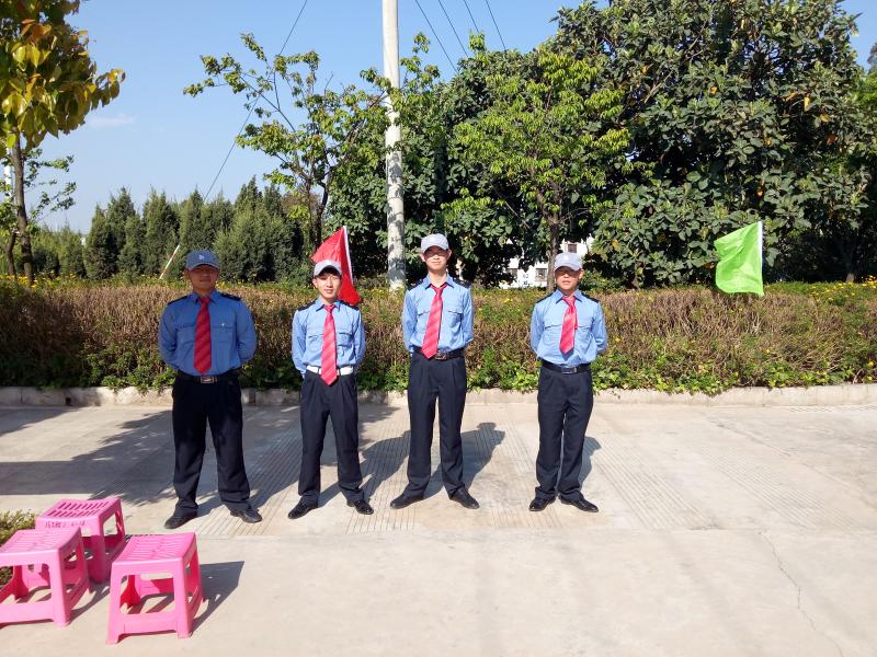 烈日当头,巡查队员们,他们身穿朴素的保安服,在校门口迎接来自各州市的参赛队员及各上级领导,同时也维护着校门口出行秩序,保证我校的技能大赛能顺利进行。