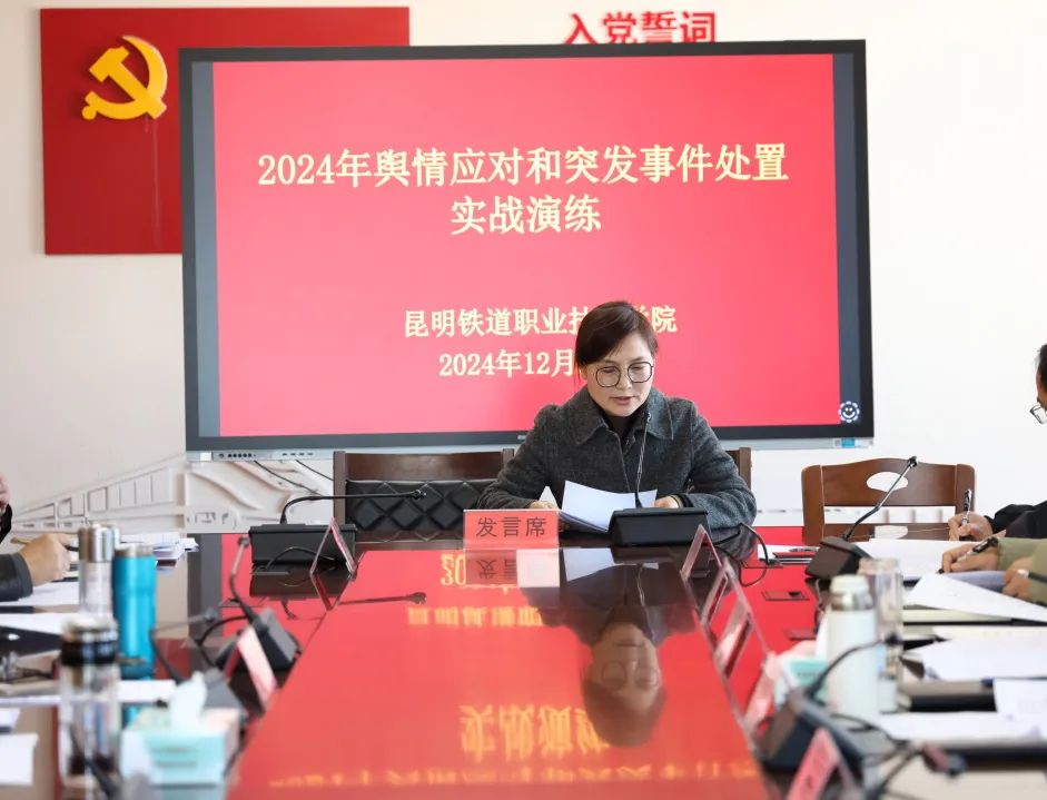 “与事实不符”“主观臆测”“将进一步追责”……12月20日,学院舆情应对和突发事件处置实战演练在模拟事件营造的紧张氛围中展开。党政班子成员、全体中层干部参加演练。