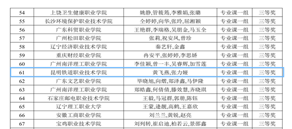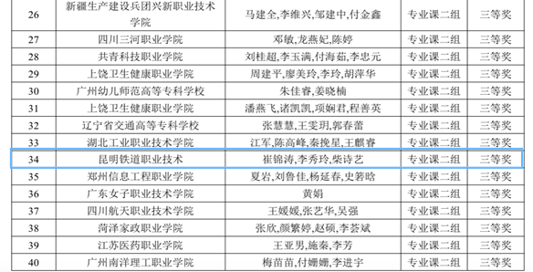 机车车辆学院教师胡敏、郭毅、李剑、张倩玉团队,邮电学院教师黄飞燕、铁道运输学院教师张力娅组成的团队,荣获专业课一组三等奖?;党盗狙г航淌Υ藿跆?、李秀玲、柴诗艺团队荣获专业课二组三等奖。