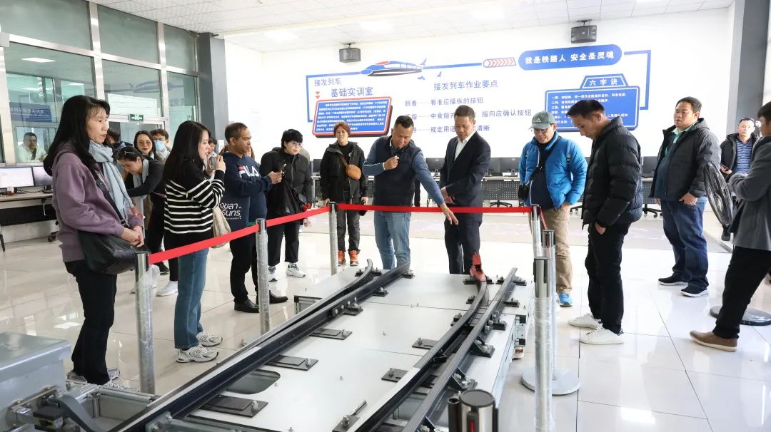 在林世烈的讲解下,代表团考察参观了学院机车检修实训基地、城市轨道交通实训基地、云南高速铁路技术公共实训基地等教学实训场所。