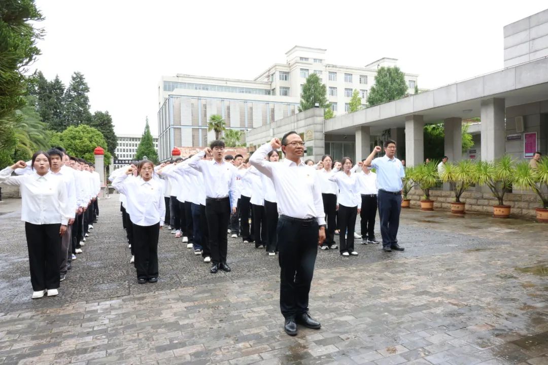 7月1日,学院党委组织83名新党员赴西南联大旧址举行入党宣誓仪式。党委书记王树华领誓,全体党员面向党旗庄严宣誓,表达对党的忠诚和为共产主义事业奋斗终身的决心。随后,新党员及师生参观了西南联大旧址及博物馆,通过珍贵史料深刻感悟联大人挽救民族危亡的坚定担当与复兴民族的崇高使命。