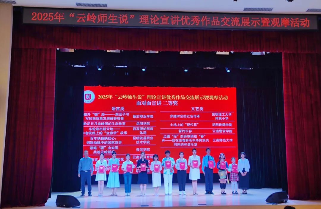 根据《中共云南省教育工委 云南省教育厅关于公布2025年“云岭师生说”理论宣讲活动结果的通知》,我校教师朱婷获面对面宣讲语言类二等奖,颜钲曜、左绍宁、邱婷、阮思文获视频类优秀奖。
