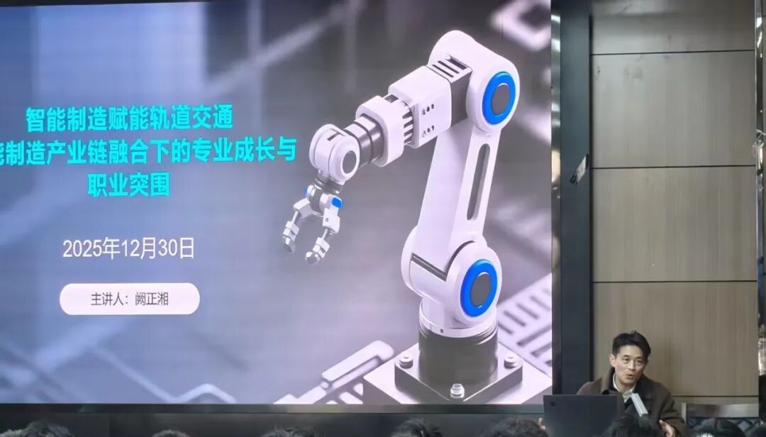 12月30日下午,学院特邀云南省产业导师阙正湘开展了主题为《智能制造赋能轨道交通:产业链融合下的专业成长与职业突围》的专场讲座?;绻こ萄г褐悄芸刂萍际酢⒊鞘泄斓澜煌ɑ缂际踝ㄒ档?00余名学生到场聆听。