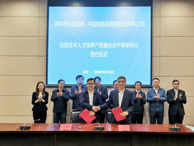 5月29日,昆明市人民政府与中国铁路昆明局集团有限公司在昆明会堂签署合作框架协议,决定依托昆明铁道职业技术学院,合力加大铁路技术人才培养力度。