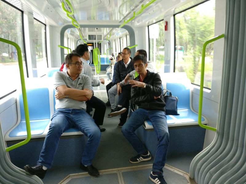 5月6日公司安排我们乘坐了正在联调的有轨电车,在车上大家就自己关心的技术问题向企业的工程师进行了学习和交流。