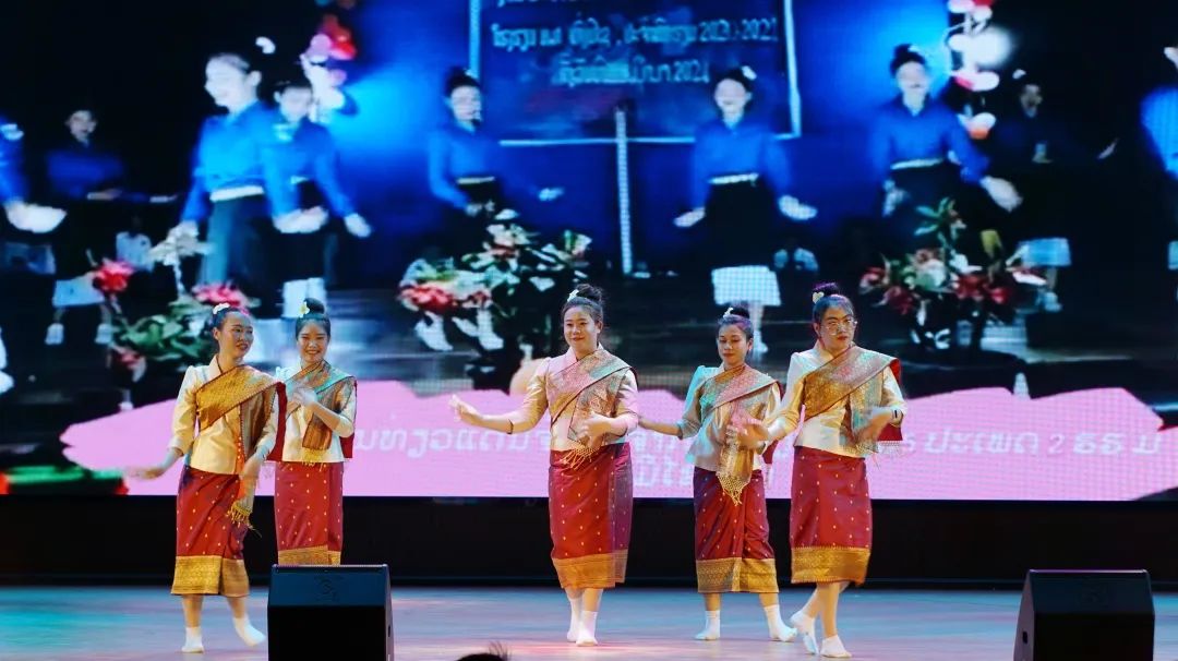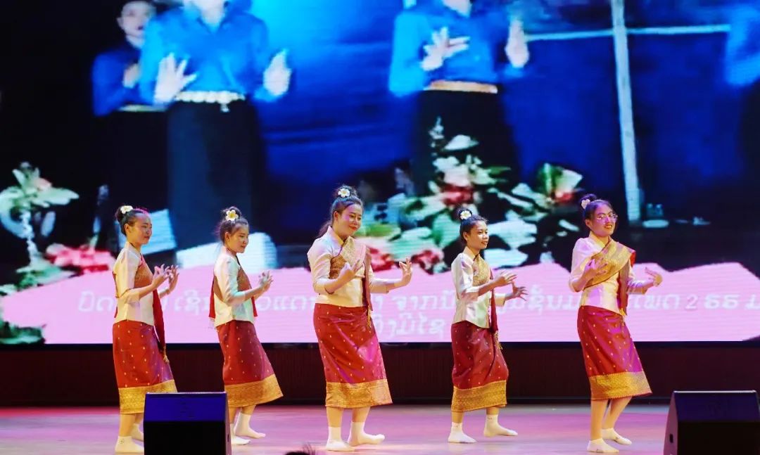 在我校学习的40名老挝首批铁路教师也到现场观看了演出并登台为大家献唱《坐着火车去老挝》,表演了老挝传统舞蹈,掀起了晚会高潮。