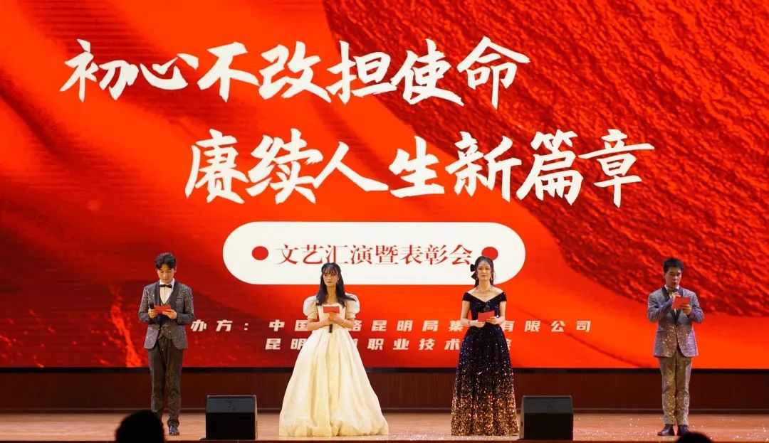 4月19日晚,中国铁路昆明局集团有限公司在我校羊甫校区成功举办2023届高职大专生“2+1”培训班文艺汇演暨理论培训总结表彰会。中国铁路昆明局集团有限公司党委委员、工会主席、副总经理李德明,我校党委书记王树华、校长李瑞林及班子成员,昆明铁路局各部门、各站段领导现场观看文艺汇演并为获奖学员颁发奖状。
