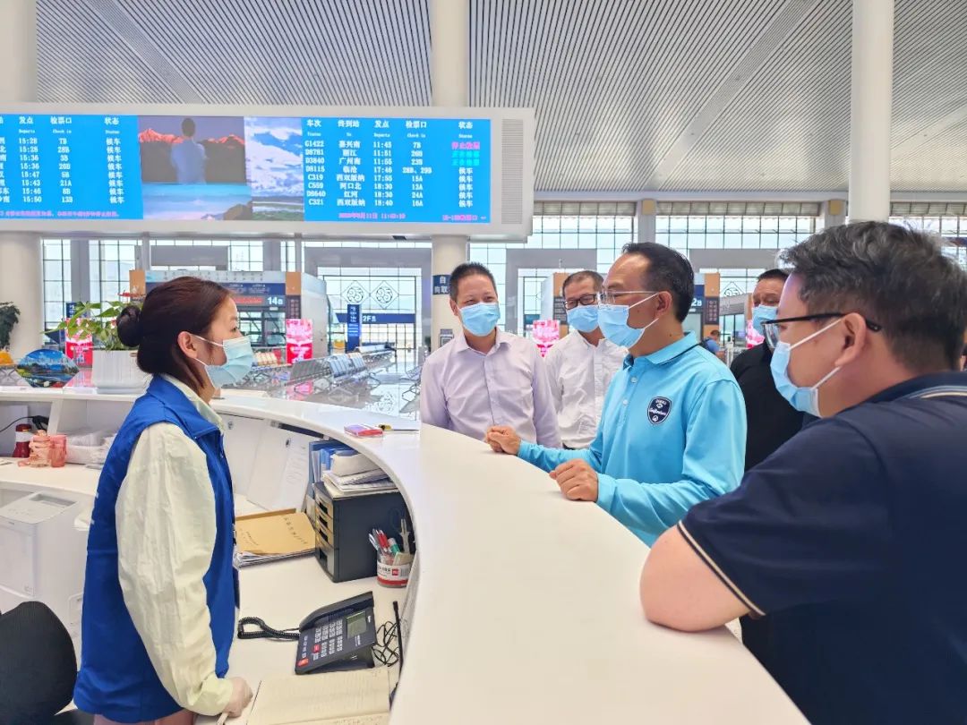 5月11日上午,学院党委书记王树华带队到昆明站、昆明南站进行调研并看望实习学生。昆明站党委书记曹天福,副站长徐进荣、晏延昆,劳人科、财务科、客运科负责人陪同王树华一行看望在岗实习的学生。
