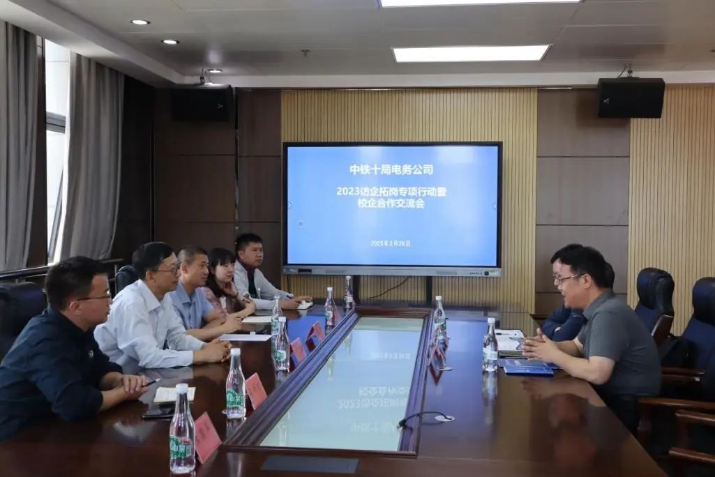 为进一步拓展学生实习和就业渠道,深化校企合作协同育人,搭建形式多样的就业平台。5月26日上午,电气工程学院邀请到中铁十局电务公司人力资源培训保障中心到???span lang="EN-US">2023年访企拓岗专项行动暨校企合作交流会,同时面向2023届毕业生进行面试招聘。中心主任种立、副主任古玉琦,学校副院长尹光,电气工程学院、机电工程学院、招生就业处相关负责同志参加座谈交流。