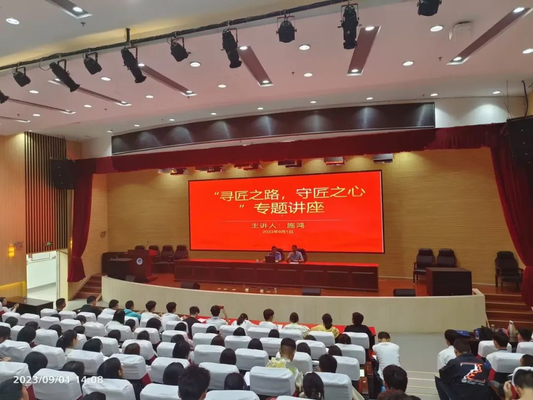 仪式结束后,施鸿为电气工程学院2023级新生开展了以“寻匠之路、守匠之心”为题的专题讲座。鼓励同学们要“干一行爱一行、干一行钻一行”,不断在劳动中创新、创造。
