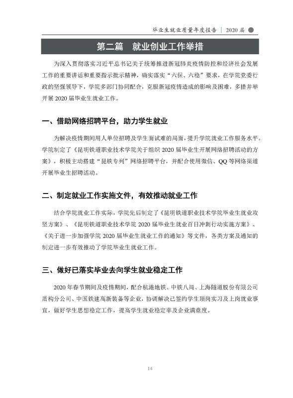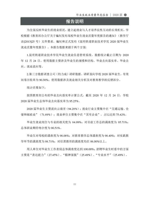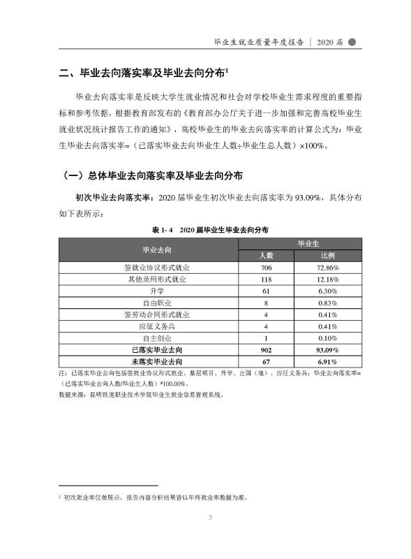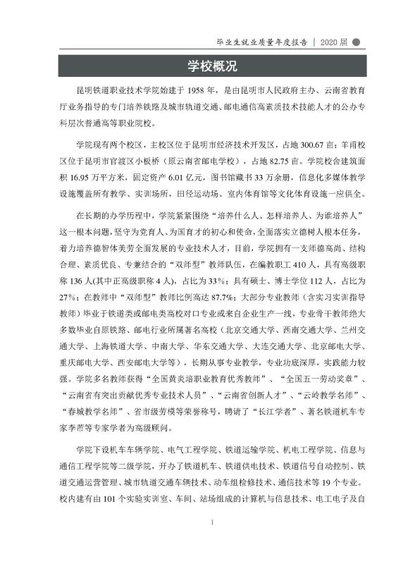 昆明铁道职业技术学院2020届毕业生就业质量年度报告