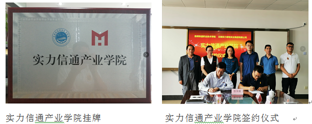 信息与通信工程学院从2020年11月开始酝酿产业学院的成立,多方考察、几经论证,终于确定了与实力集团的合作。实力集团深耕云南,面向全国,涉足地产、文旅、服务、教育等多个领域,旗下教育板块与云南多家公办高校合作良好,是一家实力雄厚、品牌影响力大、有社会责任、有教育情怀的企业。双方合作成立产业学院——实力信通产业学院,从“电信服务与管理”专业开始合作。根据协议,双方对合作专业进行共建共管,以现代学徒制的模式校企共同培养人才。