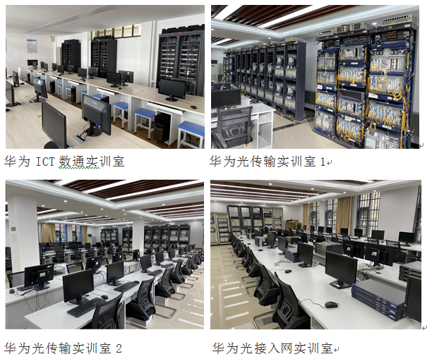 信息与通信工程学院与华为公司从2000年起在客户技术培训领域建立了合作关系,双方共建华为昆明培训中心,为华为客户(主要为通信运营商骨干技术人员)提供培训服务。合作关系建立二十年,双方合作培训项目几乎覆盖了通信全网络,累计实施培训服务2万余人次,培训服务质量得到华为客户高度认可;学院也培养了大批高素质的通信网络专业教师,使学院的通信技术专业实力在国内中高职院校中保持领先。目前,华为昆明培训中心共有12位通过华为认证的专业教师,有华为光网络产品、接入网产品、数据通信产品、核心网产品等实训环境,培训中心面积1500余平米,设备价值超过一亿元。