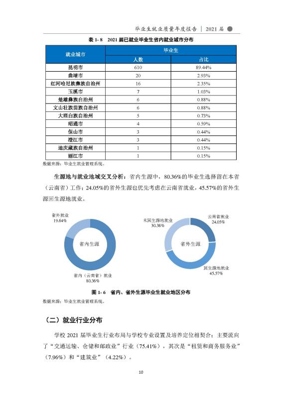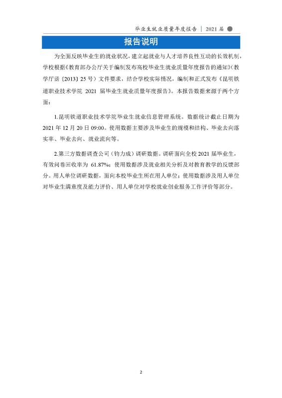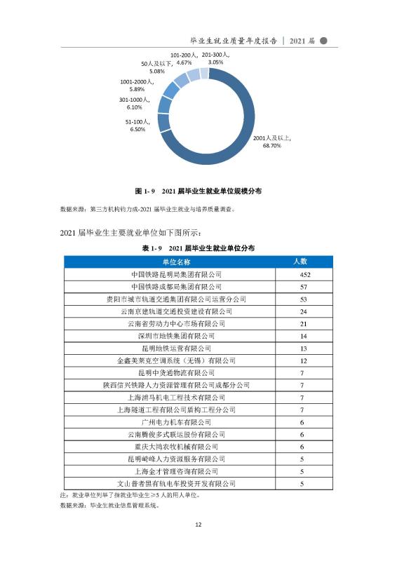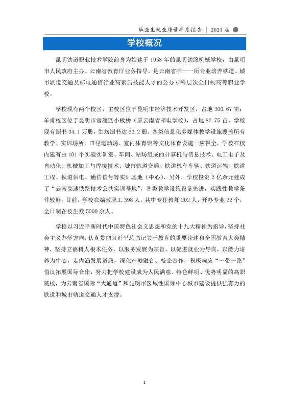 昆明铁道职业技术学院2021届毕业生就业质量年度报告