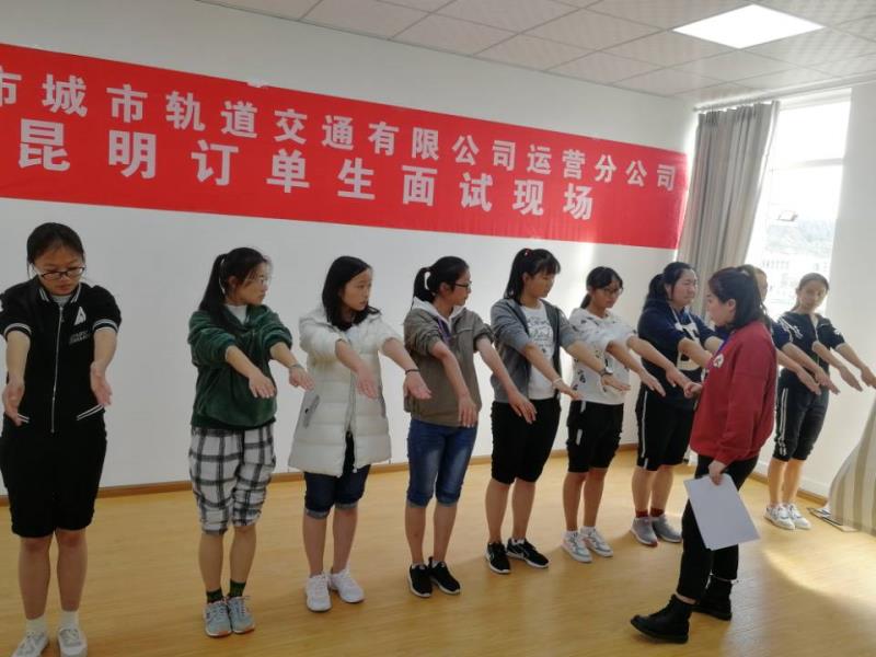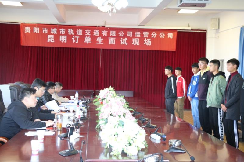 本次组班招聘工作为期两天,分为上机测试、资料审查、辨色力检查、体测、现场面试几个环节。最终,贵阳市城市轨道交通有限公司运营分公司共录取88人为公司订单培养学生,培养方向为城市轨道交通车辆技术、城市轨道交通机电技术和城市轨道交通通信信号技术三个专业。后期,学院将和公司对接订单生培养相关事宜,学院将结合公司对订单人才培养的要求,对订单培养学生有针对性的进行专业理论知识教育及专业实践技能培训,订单学生毕业前还有通过公司的验收考试及入职审核,验收合格的学生与公司签订劳动合同,纳入公司正式员工管理。