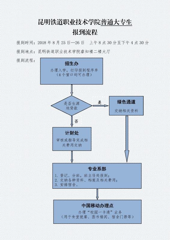 昆明铁道职业技术学院2018年普通大专生报到流程