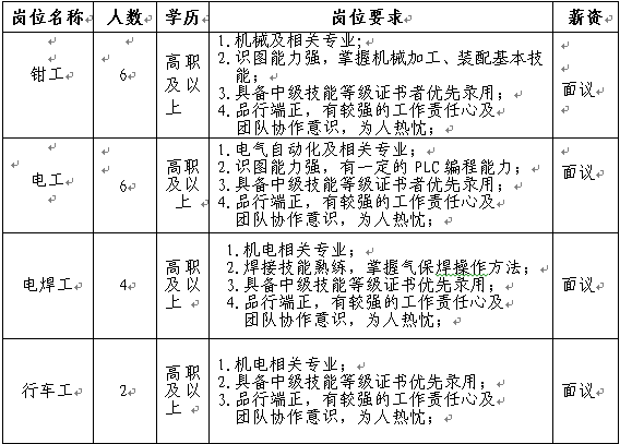5. 机操工 10人 中专技校及以上
