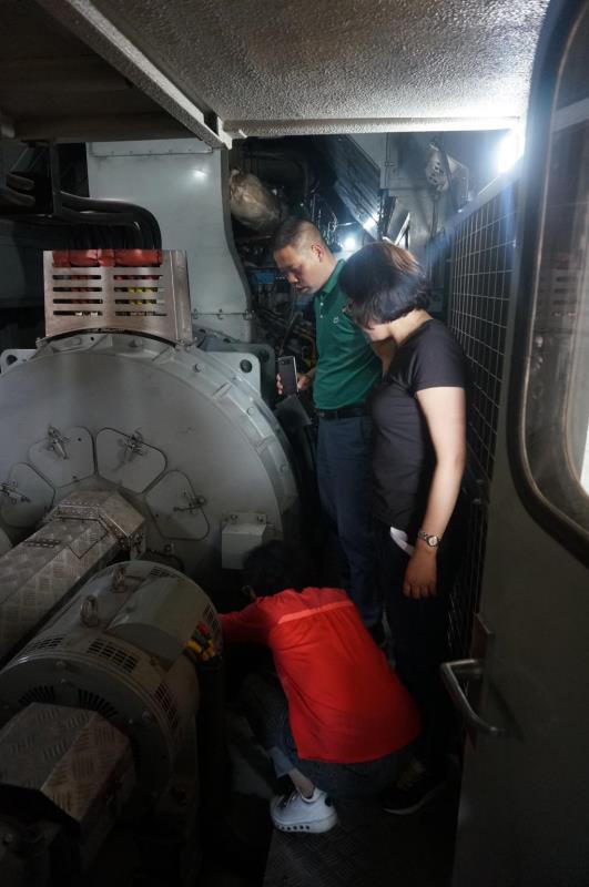 每个教师认真查看了司机室操纵台、高低压电器柜、动力室、冷却室、辅助室和机车底部等各处的设备、仪表和按钮。各位专业老师按照对应的课程内容,一一确认肯尼亚的CDD5B1型内燃机车中的设备布置,对各功能系统的控制关系进行了详尽的讨论,并拍摄了大量的照片作为新的教学资料。三位翻译老师在专业老师的介绍下,对各设备和零件的功能和设备间的关系进行梳理,以便能在上课时更准确、完善地传达教学内容。并与现场中方管理人员进行交流,了解他们对肯方人员在现场工作交流所需中文的要求,并询问我院培训的上期学员的工作表现,管理人员给予了高度认可和肯定。