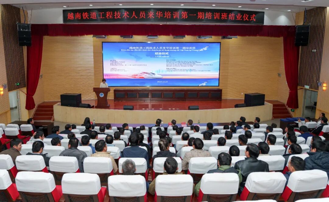 林世烈代表学院向顺利完成学业的学员表示祝贺。他表示,本次培训项目务实高效,学员在培训中展现出良好的专业素养与学习热情。他希望学员归国后能成为中越铁路技术合作的纽带,推动中越铁路双方在标准互通、人才培养等方面的持续合作。
