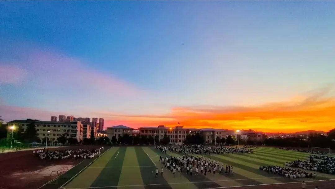 同学们漫步霞光之下