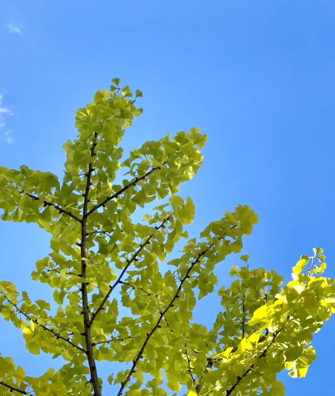 焦糖色的银杏叶从枝头飘落