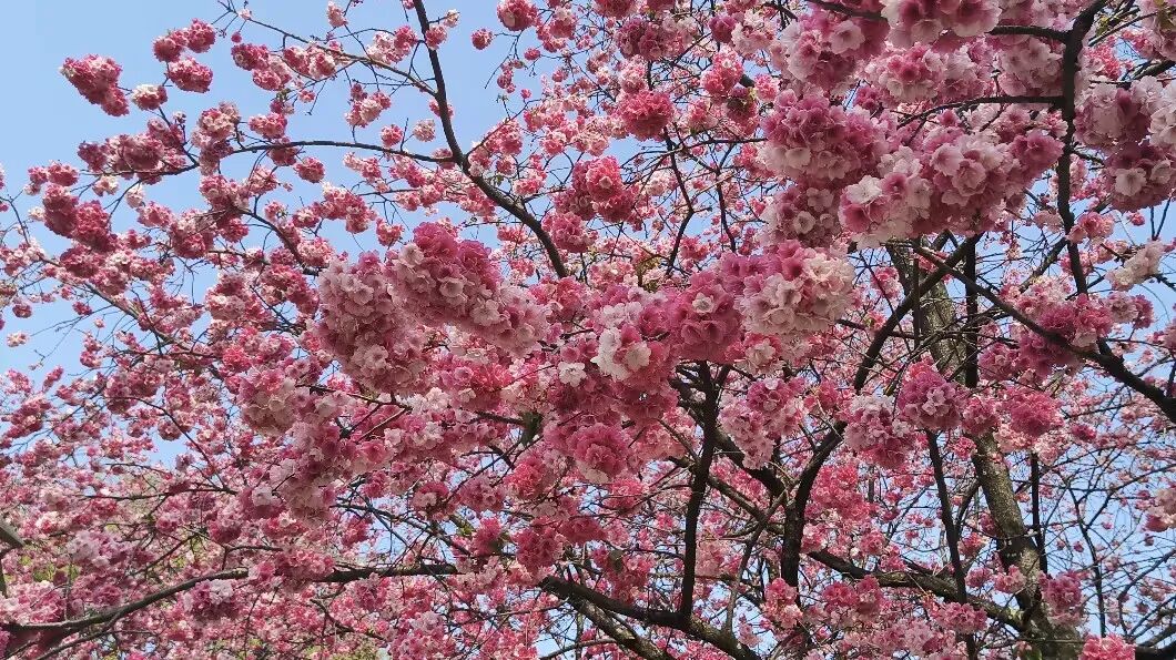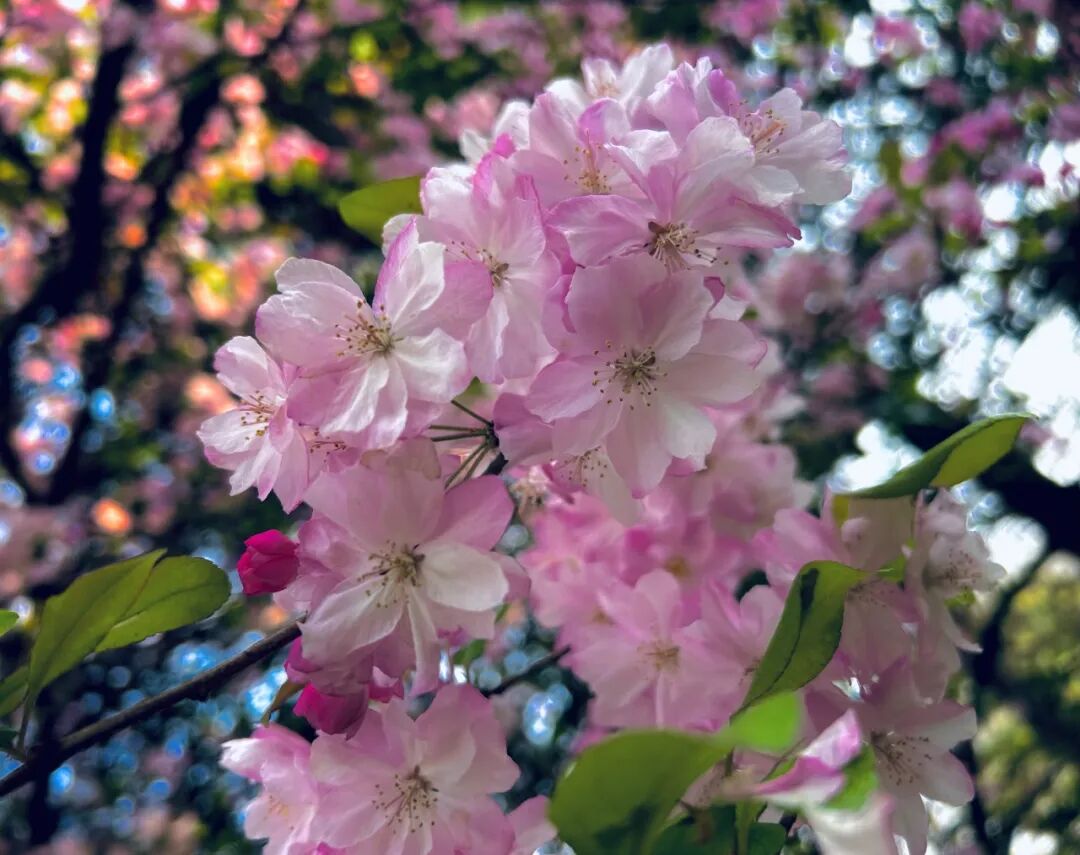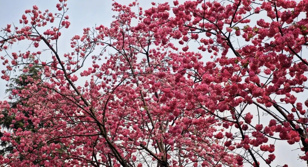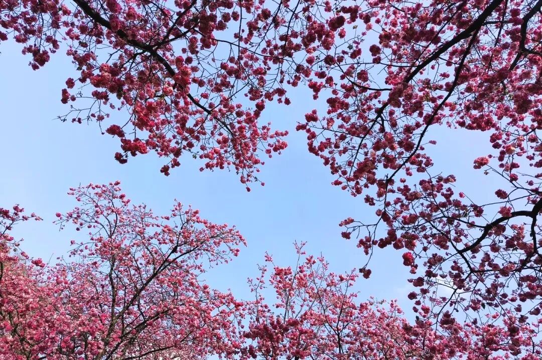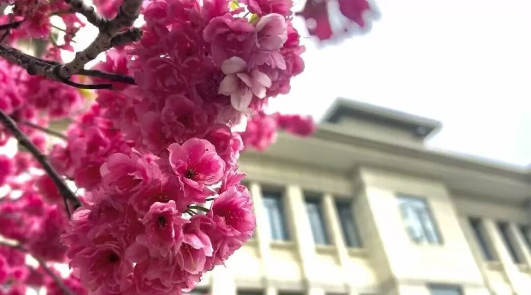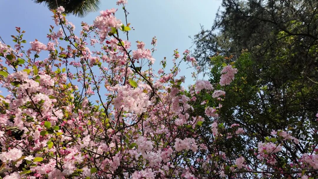 春风拂过校园,沉寂了整个冬天的枝芽终于迎来了盛放。粉红的花瓣挨挨挤挤,缀满枝头,整个校园都被这温柔的春意包裹,连空气里似乎都弥漫着清甜的花香。