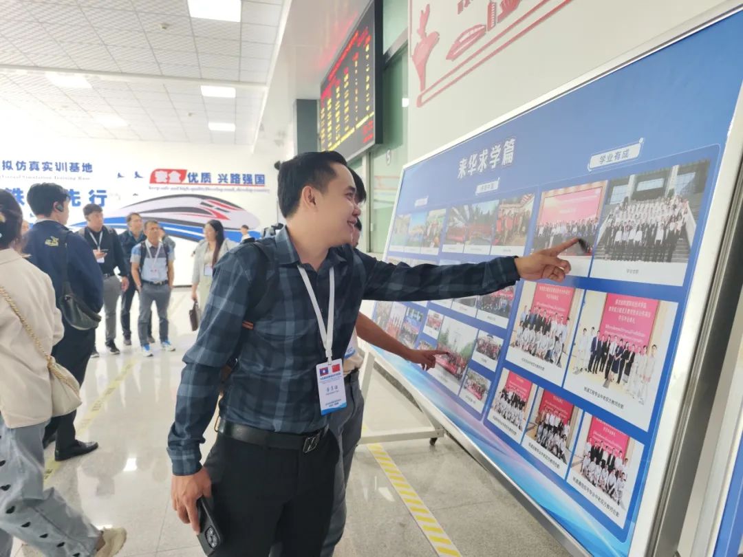 在宣传展板前面,大家久久驻足,在一幅幅照片中仔细寻找着自己的身影,回忆着在昆明铁道职业技术学院求学的两年学习时光。小永说:“好想念中国,好想念在学校学习的日子,看到这些照片,内心既感动又温暖,感谢中国老师帮我们一一记录了那段人生旅程中难忘的学习时光?!惫凰担骸罢庑┱拱迳霞锹甲诺模俏易蠲篮玫那啻汉妥钣惺栈竦难笆惫?,感谢中国老师们为帮助我们老挝培养属于自己的铁路专业人才所付出的辛勤努力?!毙∫鹚担骸袄鲜?,我们现在已经走上讲台,成为一名真正的老师了,每当我面对着我的学生,就不由想起我的中国老师。非常感谢学院的专家团队一批批去到老挝帮我们解决实际教学工作中的困难,他们是我们从教路上最大的底气?!?/span>