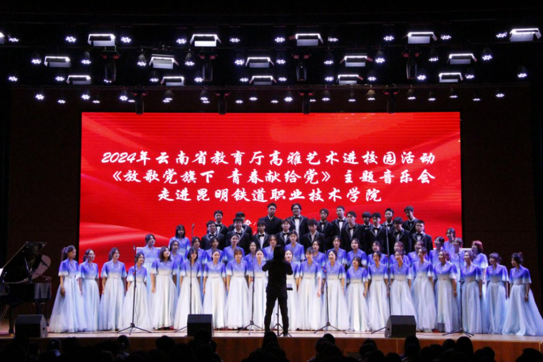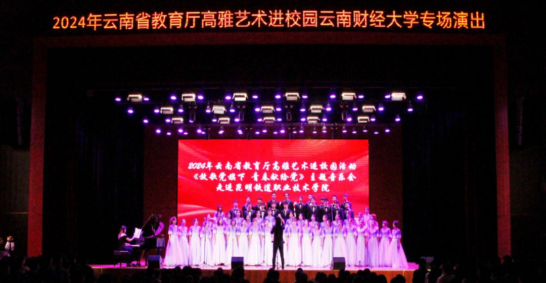 11月21日,2024年云南省教育厅高雅艺术进校园云南财经大学《放歌党旗下 青春献给党》合唱主题音乐会在我校羊甫校区成功举办。学院部分党委班子成员,相关职能部门负责人及1400余名师生共同观看演出。