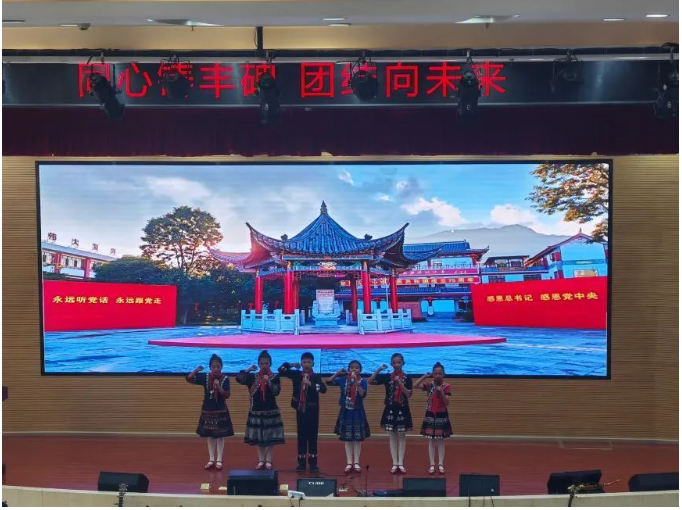 在交流活动中,宁洱民族团结实验小学的学生们以“小小收信人”的身份,以稚嫩而坚定的声音,深情讲述了“普洱民族团结誓词碑”背后的感人故事。小学生们身着民族服饰,现场演唱了学校精心创编的三首歌曲,展现了孩子们对家乡的热爱,也表达着对民族团结、和谐共处的美好愿景,赢得现场师生的阵阵掌声。昆明铁道职业技术学院学生也送上了精彩的歌舞表演。