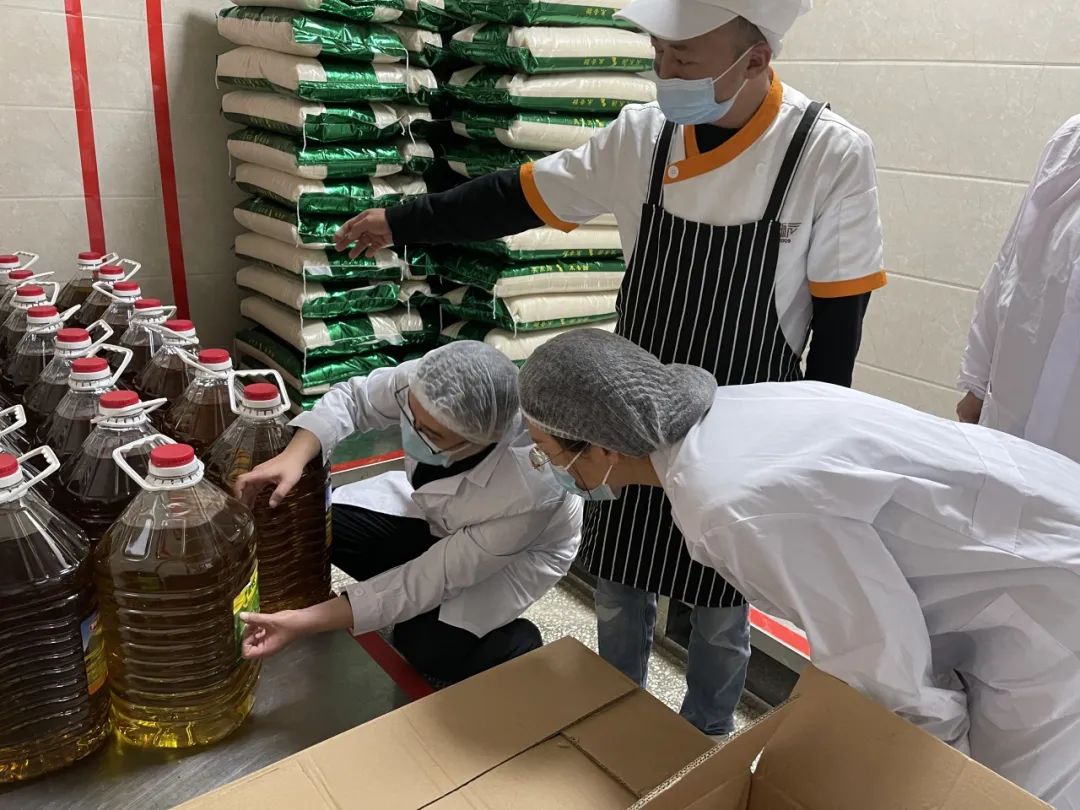 罗春元在检查中,提醒小板桥街道市场监督管理所褚明磊检查中要注意的关键点。褚明磊经常到学院食堂来看,对学院羊甫校区食堂情况非常了解。每次都会到食品加工操作间、库房等区域认真查看,检查食材进货查验记录等,从各方面给予学院悉心指导。
