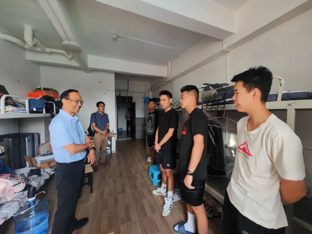 在学生宿舍区,学院领导与宿舍管理人员交流,了解设施设备配备和学生住宿情况,强调要强化安全意识和服务意识,为学生提供安全、温馨的居住环境。与学生面对面沟通交流,详细询问同学们的生活情况,叮嘱同学们与室友和谐相处,互相包容,成为大学成长道路上携手进步的伙伴;勉励同学们要珍惜大学的美好青春时光,树立好目标,以饱满的热情投入到学习和生活中去,扎实学好专业知识,努力提高综合素养,为未来的职业生涯和人生道路打下坚实的基础。