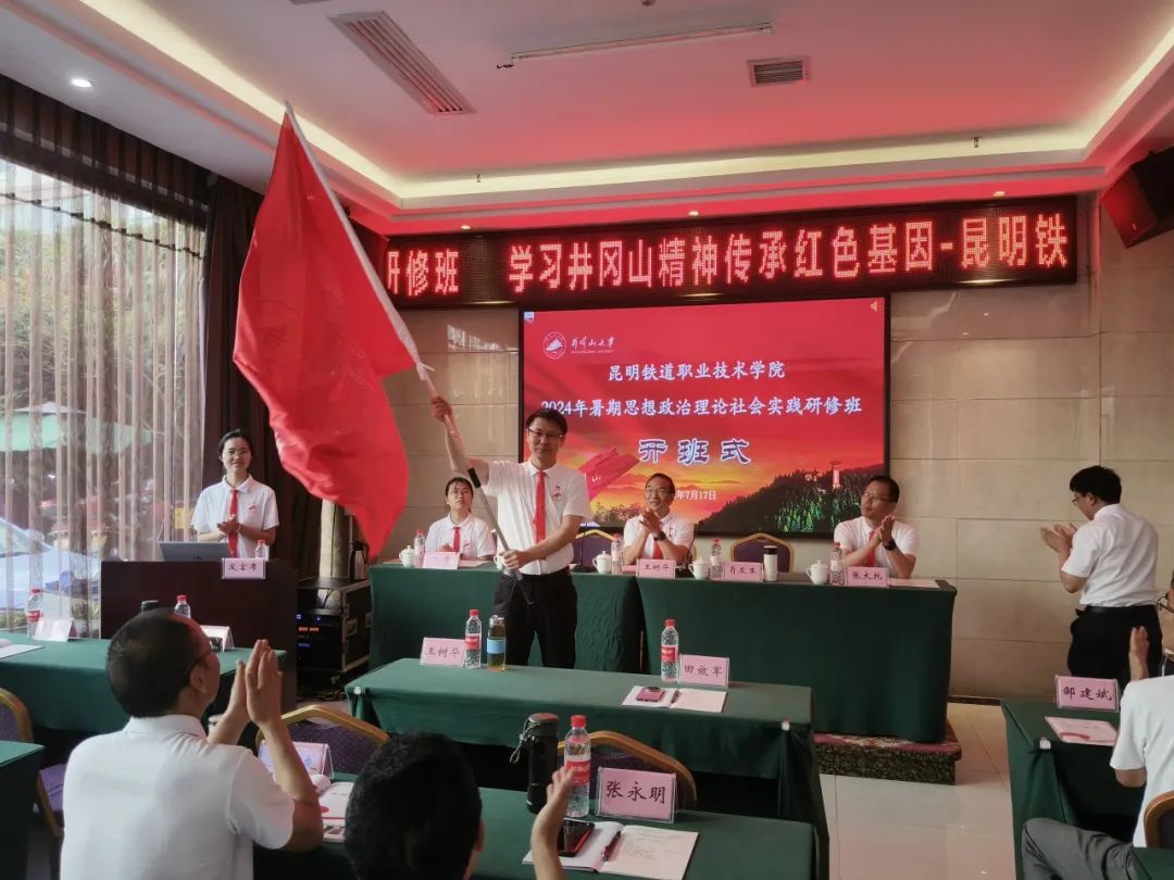 为推动学院思政教育高质量发展,以井冈山精神进一步引导广大思政教师队伍坚定理想信念,持续深化思政育人成效。7月17日,学院在井冈山大学培训基地举行“学习井冈山精神 传承红色基因”实践研修班开班仪式。井冈山大学马克思主义学院党委副书记、院长肖发生,学院党委书记王树华,副院长田效军,纪委书记张大托及全体参训教师参加开班仪式。