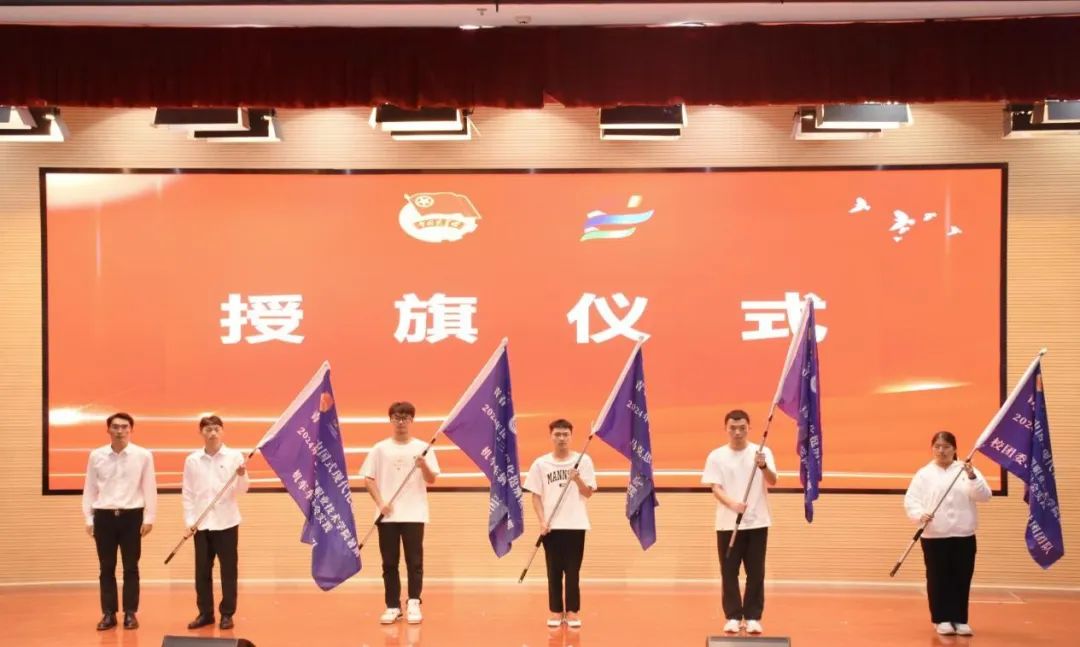 启动仪式上,田效军、邹建斌分别为“三下乡”社会实践团队授旗。