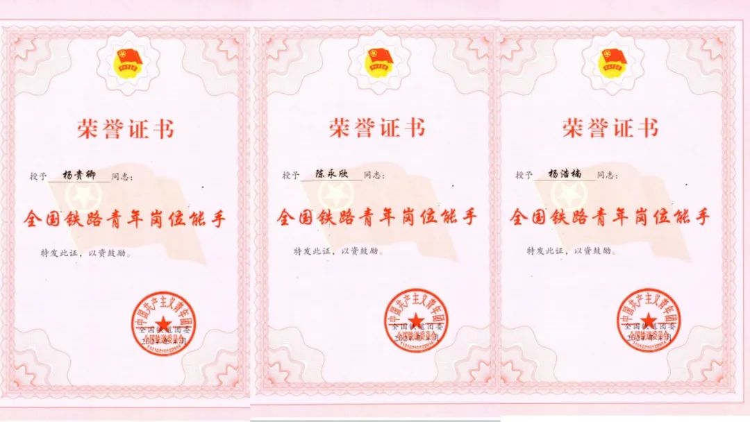 根据《全国铁道团委关于2023年度“双创”活动、青年岗位能手、向上向善好青年的表彰决定》,我?;绻こ萄г豪钤苍怖鲜屠蠲髑锿倩瘛叭废蛏舷蛏坪们嗄辍背坪牛换党盗狙г盒砘?、杨贵卿、陈永欣、杨浩楠四位同学获“全国铁路青年岗位能手”称号。