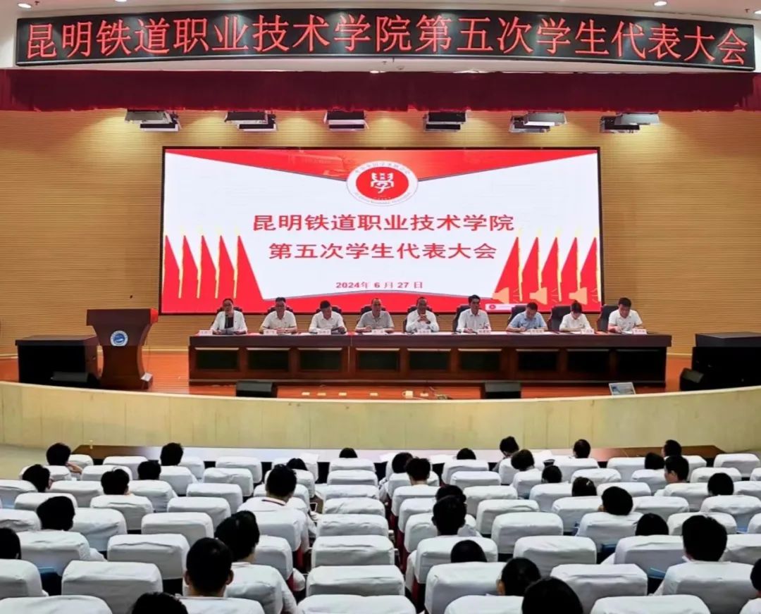 2024年6月27日,昆明铁道职业技术学院第五次学生代表大会在睿知楼报告厅举行。学院党委书记王树华,党委委员、组织部部长、工会主席邹建斌,各二级学院党支部书记(副书记)、团总支负责人及全体学代会代表参加开幕式。团委书记主持开幕式。
