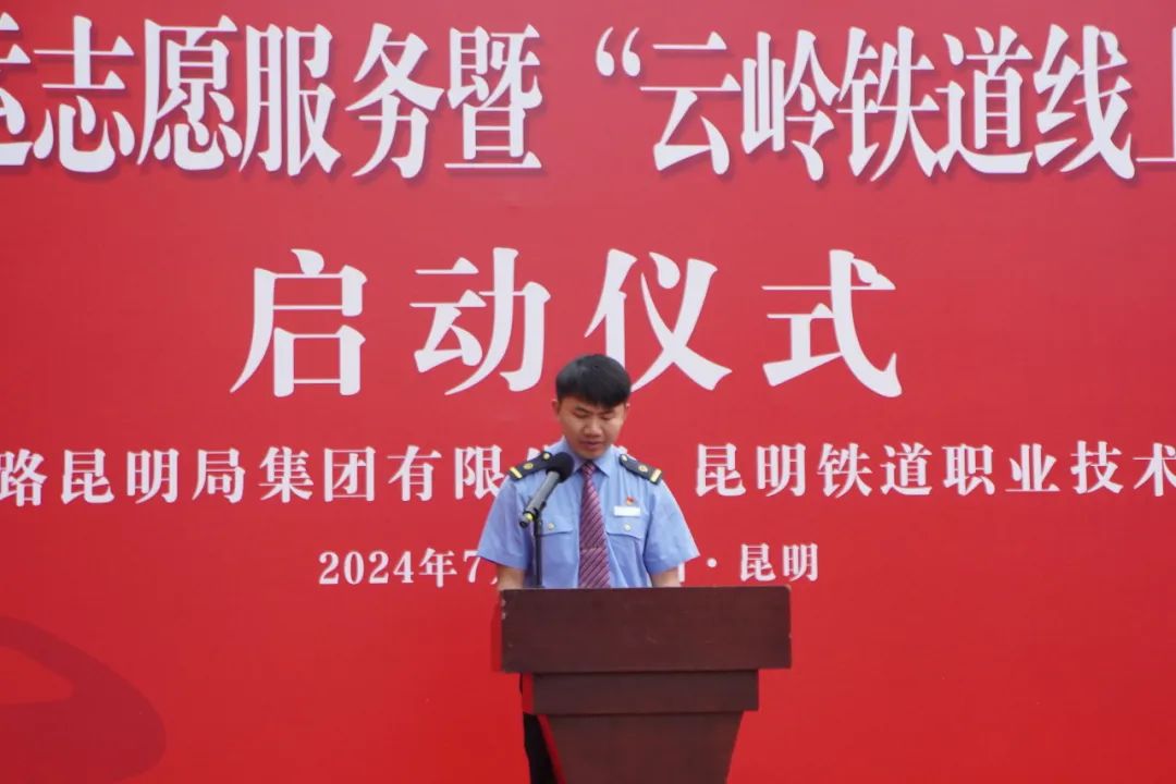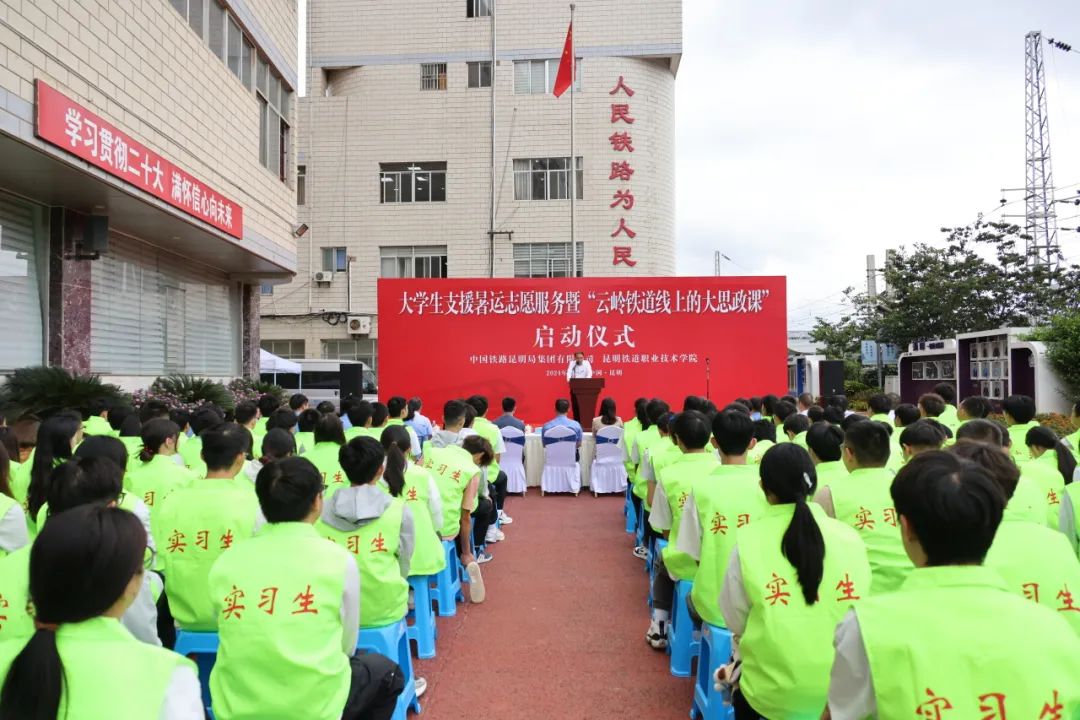 7月5日,大学生支援暑运志愿服务暨“云岭铁道线上的大思政课”启动仪式在昆明铁路客运段进行。
