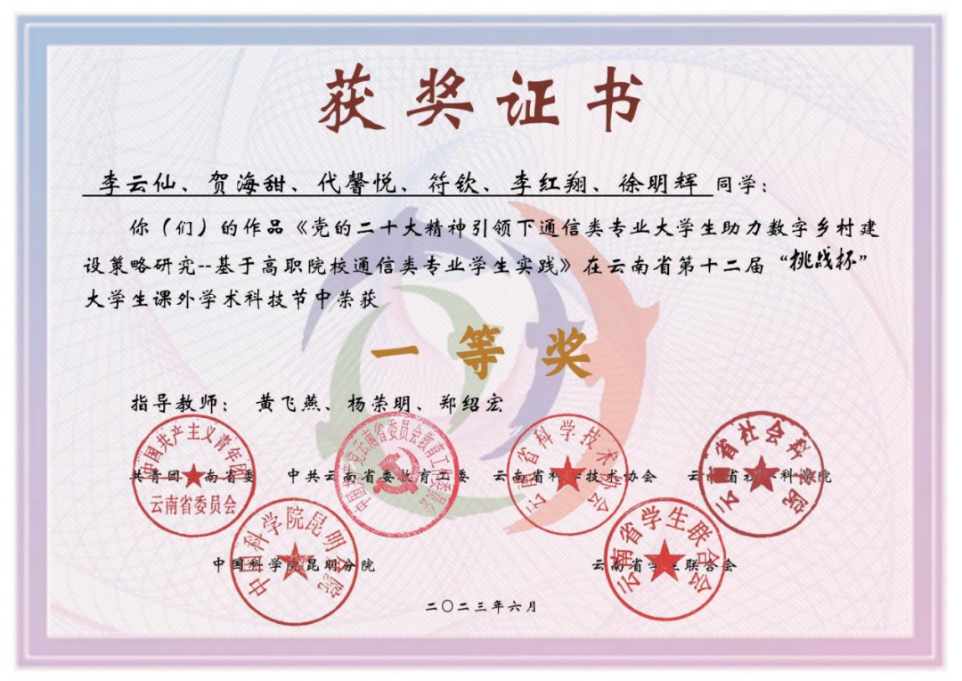云南省“振兴杯”比赛获奖荣誉