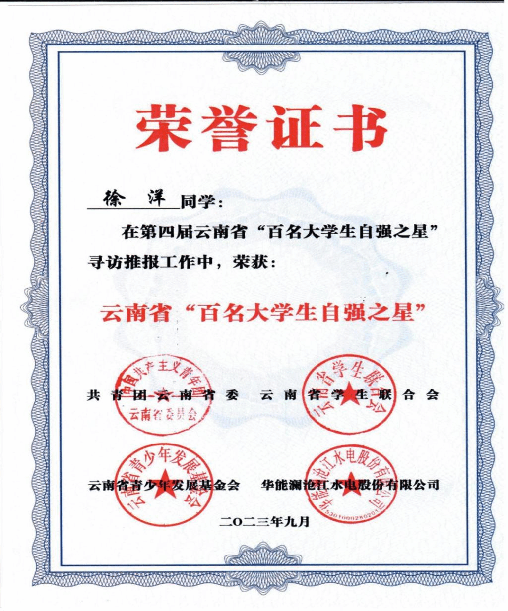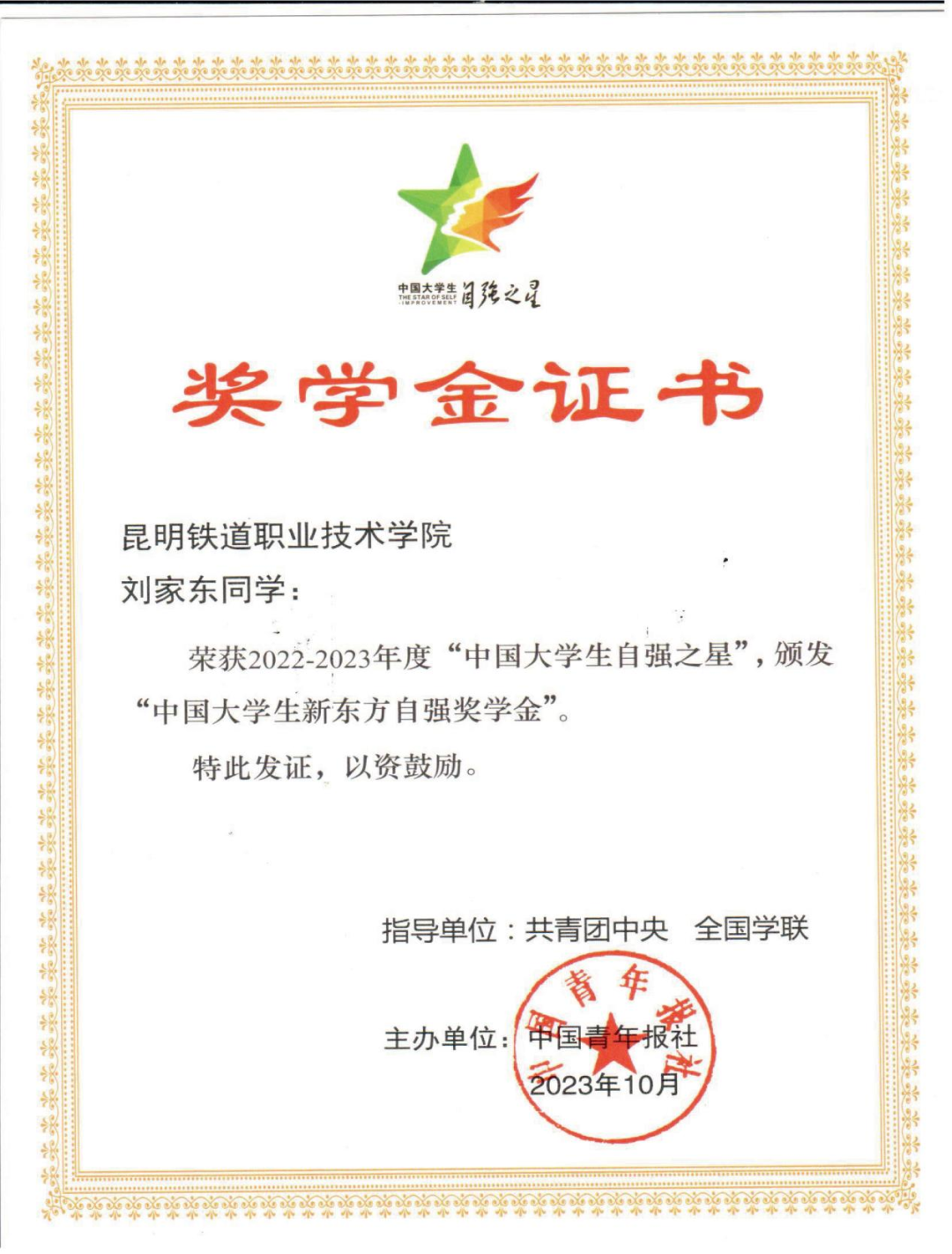 云南省大学生自强之星