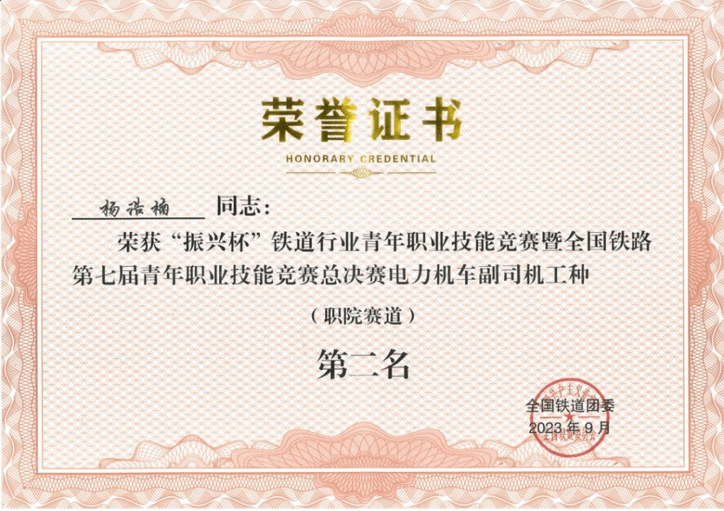 全国铁道团委“振兴杯”比赛获奖荣誉