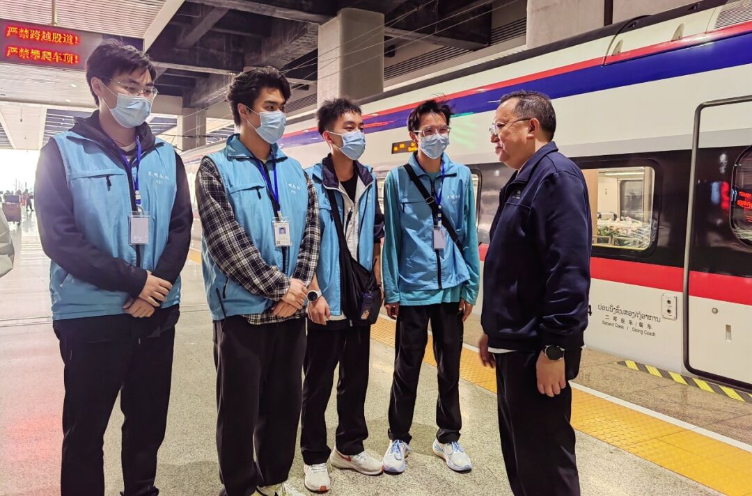 为了解昆明铁道职业技术学院实践育人情况,2024年4月13日,昆明市教育体育局党组书记、局长穆仁早和党组成员、副局长杨文佳,在昆明南站、西双版纳站、磨憨站,走访看望在工作岗位上的学院参加岗位实习的学生代表。