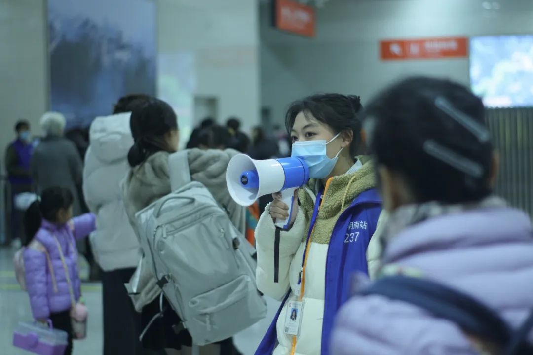 春运期间,车站的客流量剧增,面对如此巨大的挑战,他们毫不退缩,用认真的态度和饱满的热情,为旅客们提供最优质的服务。