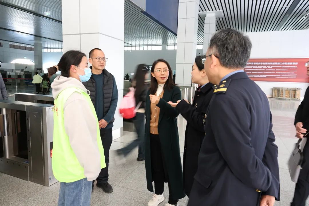 在昆明站,李瑞林与站长杨俊志进行深入交流。杨俊志对学院提供实习生助力春运工作表示感谢,对实习生的表现给予肯定,对提高学生就业竞争力提出有效建议。李瑞林表示,学院历来重视与昆明铁路局集团有限公司的合作,作为职业院校,人才培养必须要与行业、产业及企业用人需求有效融合,人才培养的方向一定以推动产业优化,助推行业发展,助力企业提质为目标。