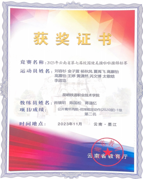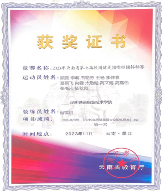 2023年11月,大学生体育协会健美操、啦啦操俱乐部参加2023年云南省第七届校园健美操啦啦操锦标赛4个赛项,荣获1个第一名,2个第二名,1个第三名的好成绩。