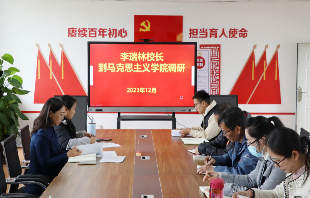 近日,院长李瑞林深入马克思主义学院调研指导马院建设工作。李瑞林听取了各教研室主任就当前思政课建设、师资队伍建设情况的汇报,并就当前存在问题及下步工作思路与马院教师作深入交流。