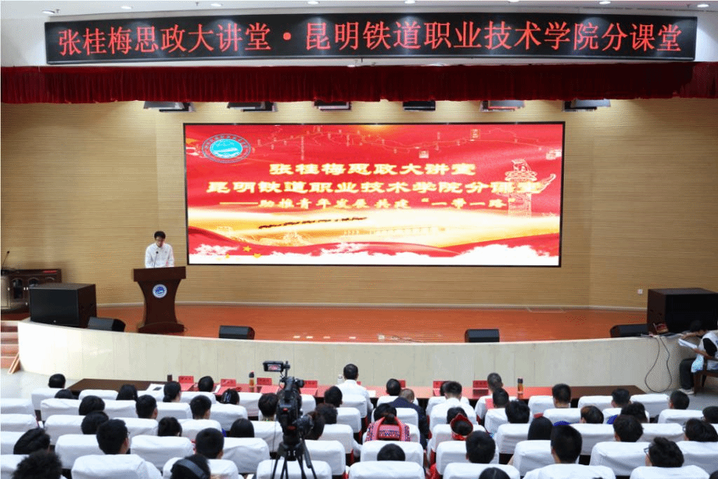 近日,以助推青年发展、共建“一带一路”为主题的“张桂梅思政大讲堂”昆明铁道职业技术学院分课堂开讲。学院党委班子成员、各党支部书记、相关部门负责人、援老挝铁道职业技术学院项目第一批专家团队、优秀毕业生及500余名学生代表参加此次分课堂。