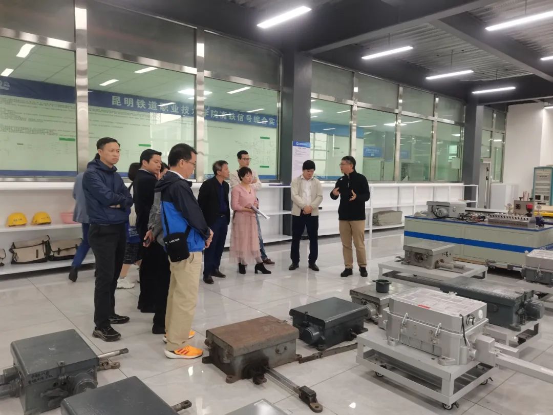 机车车辆学院马力院长带领研修班一行参观了学院机车检修实训基地、城市轨道交通实训基地、云南高速铁路技术公共实训基地等教学实训场所。
